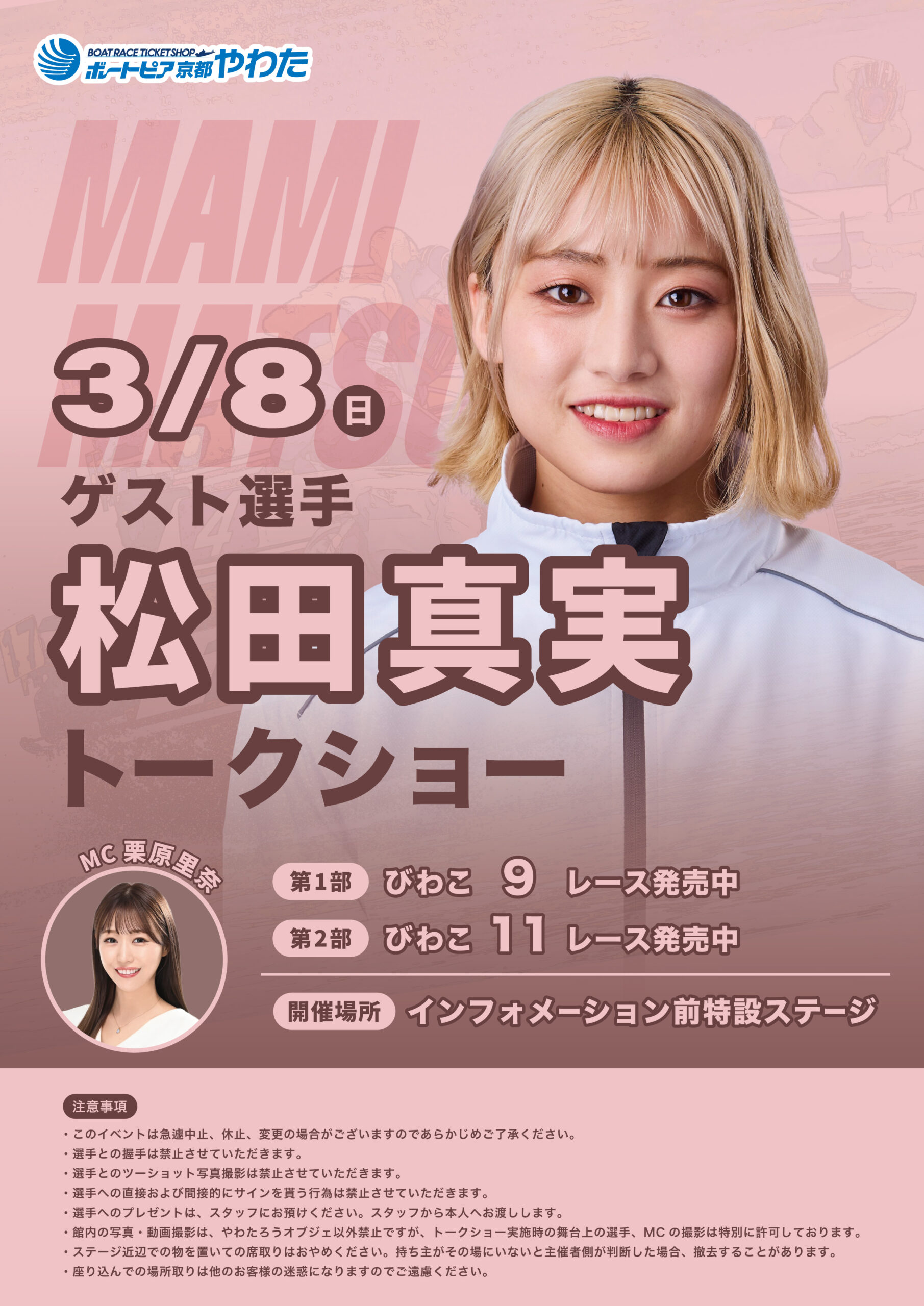 3月8日(日)、松田真実選手トークショーを行います