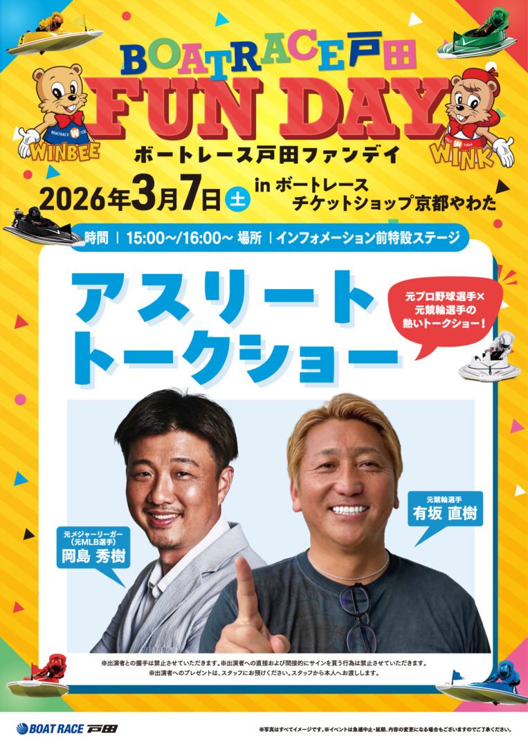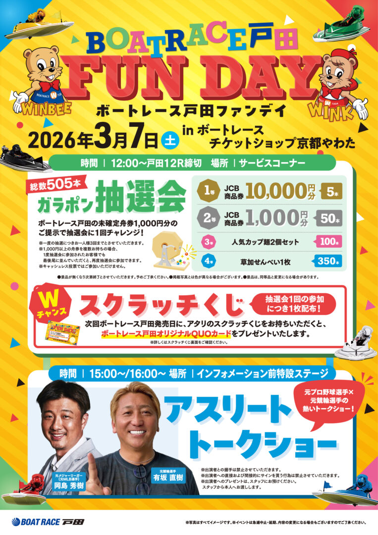 2026年3月7日(土)、ボートレース戸田主催の抽選会&アスリートトークショーを実施します。