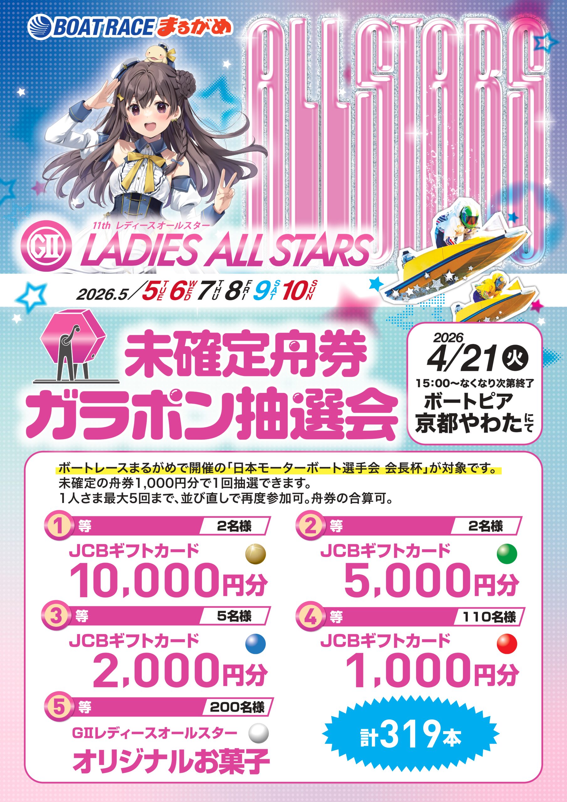 賞品:1等JCBギフトカード10,000円分など合計319本